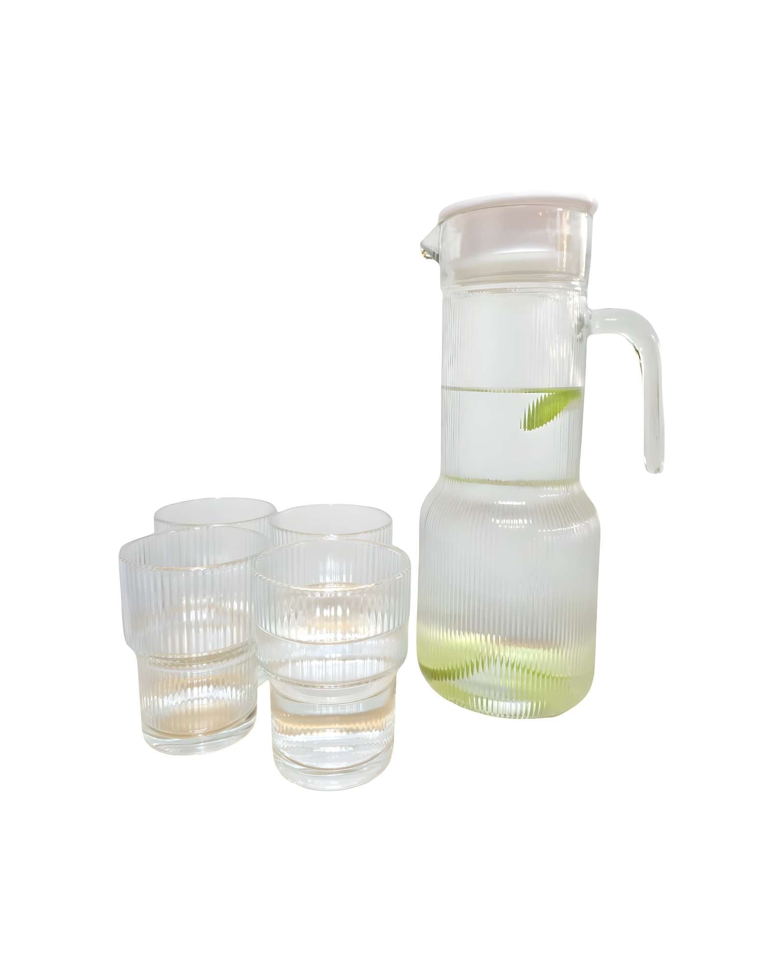 Dale un toque de sofisticación a tus reuniones con este completo set de jarra y vasos. La jarra de vidrio de 1.2 litros es ideal para servir jugos, limonada, agua o cualquier otra bebida refrescante, mientras que los cuatro vasos a juego complementan el conjunto a la perfección.