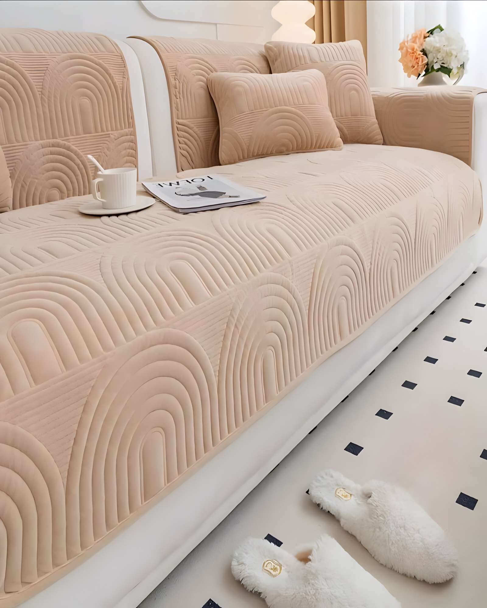 PACK DE 5 FUNDAS PARA SOFA CON DISEÑO J1 BEIGE